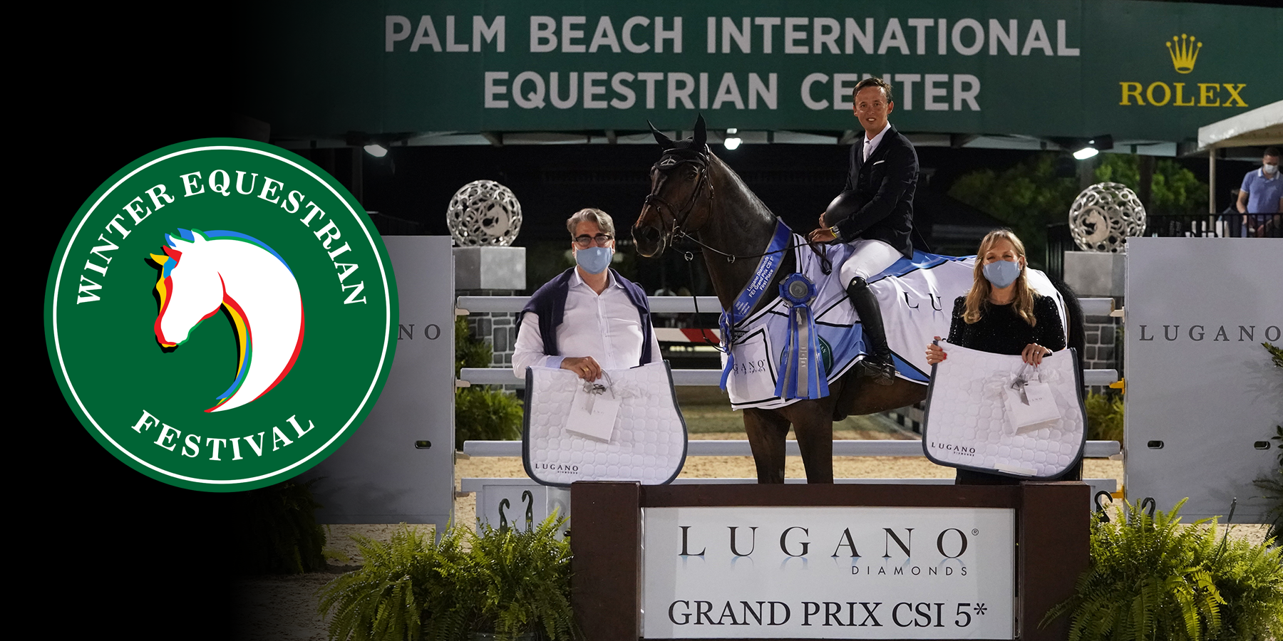 Week seven of the Winter Equestrian Festival (WEF) in Wellington, Florida was proudly sponsored by Lugano Diamonds and full of excitement! Saturday evening under the lights in the Grand Prix Arena, Bertram Allen representing Ireland aboard his mount Pacino Amiro, captured the coveted win for the $401,000 FEI CSI 5* Lugano Grand Prix. Lugano Diamonds awarded gift certificates and saddle pads to first, second and third place winners and a beautiful farrier nail necklace to the winning owner.